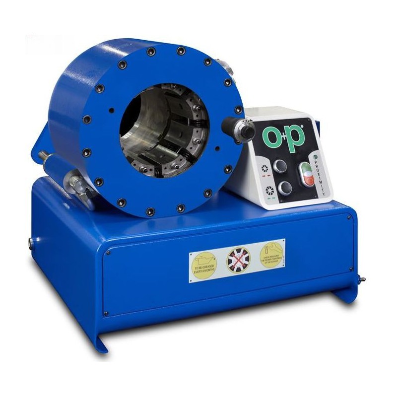 Naprava za stiskanje hidravličnih cevi do 2'' s 4 spiralami, 1'' s 6 spiralami in industrijskih cevi do 3''. Vsestranska naprava za delo na terenu. Vsebuje indikator, ki sporoči kdaj je dosežen stisnjen premer.